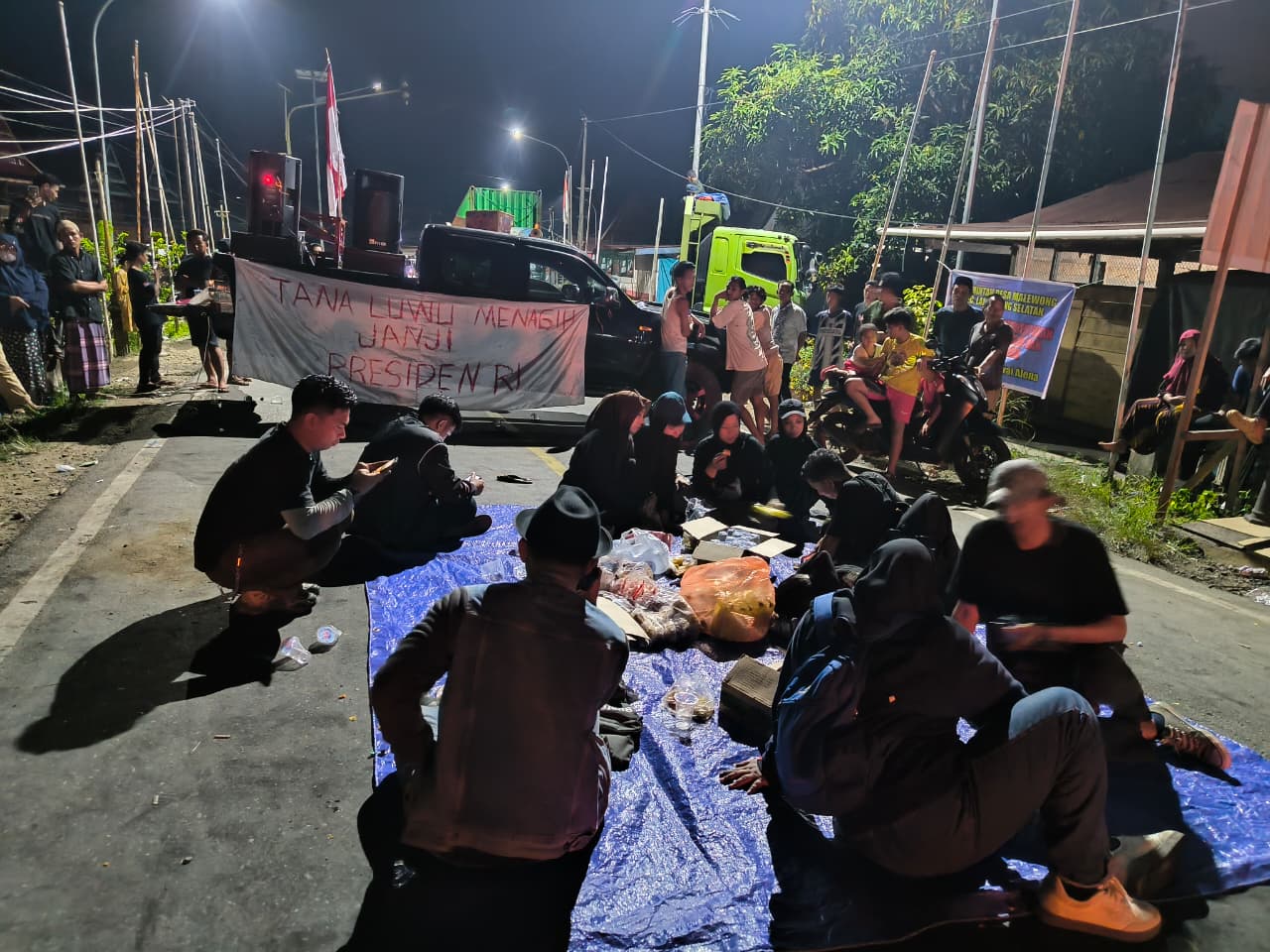 Massa aksi memilih bertahan hingga malam, bahkan menyatakan siap bermalam di lokasi aksi sembari menutup akses Jalan Poros Trans Sulawesi sebagai bentuk keseriusan perjuangan pemekaran Luwu Raya, Jumat (23/1/2026).