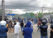 LUWU – Personel Polres Luwu melakukan pengamanan aksi unjuk rasa yang digelar aliansi masyarakat dan eks karyawan PT SGS Luwu dan Luwu Timur di perempatan traffic light Kecamatan Bua serta di depan Gate PT SGS, Sabtu (15/11/2025).
