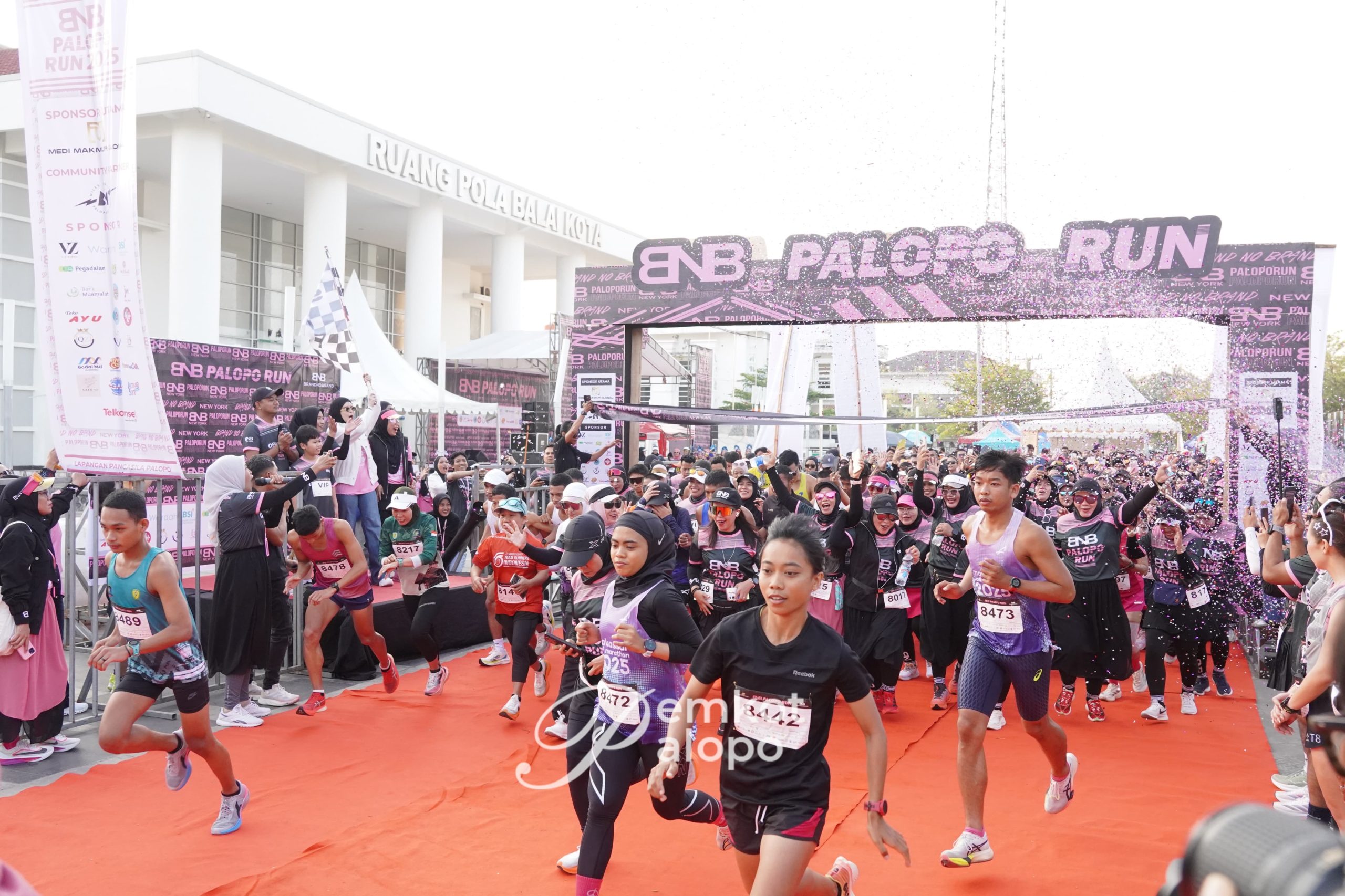 Sebanyak 500 peserta dari berbagai kalangan mengikuti ajang BNB Palopo Run 2025 yang dilepas secara resmi di Lapangan Pancasila, Pelataran Ruang Pola Balai Kota Palopo, Minggu (21/09/2025).