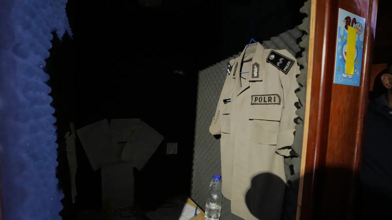 Di dalam gedung yang kini sunyi itu, para petugas menemukan berbagai properti yang dirancang khusus untuk meyakinkan calon korban.
