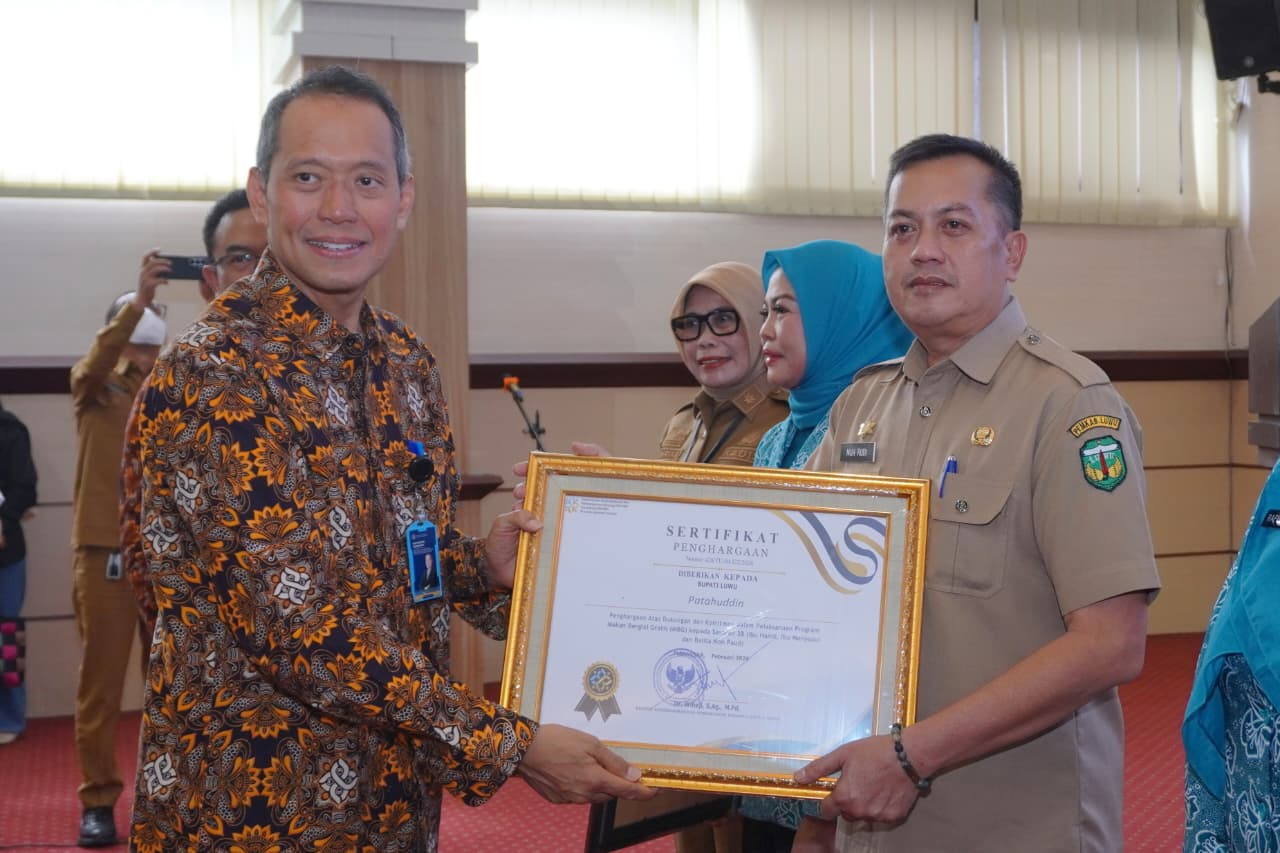 LUWU – Pemerintah Kabupaten (Pemkab) Luwu menerima sertifikat penghargaan atas dukungan dan komitmennya dalam pelaksanaan Program Makan Bergizi Gratis (MBG) bagi sasaran 3B, yakni ibu hamil, ibu menyusui, dan balita non-PAUD.