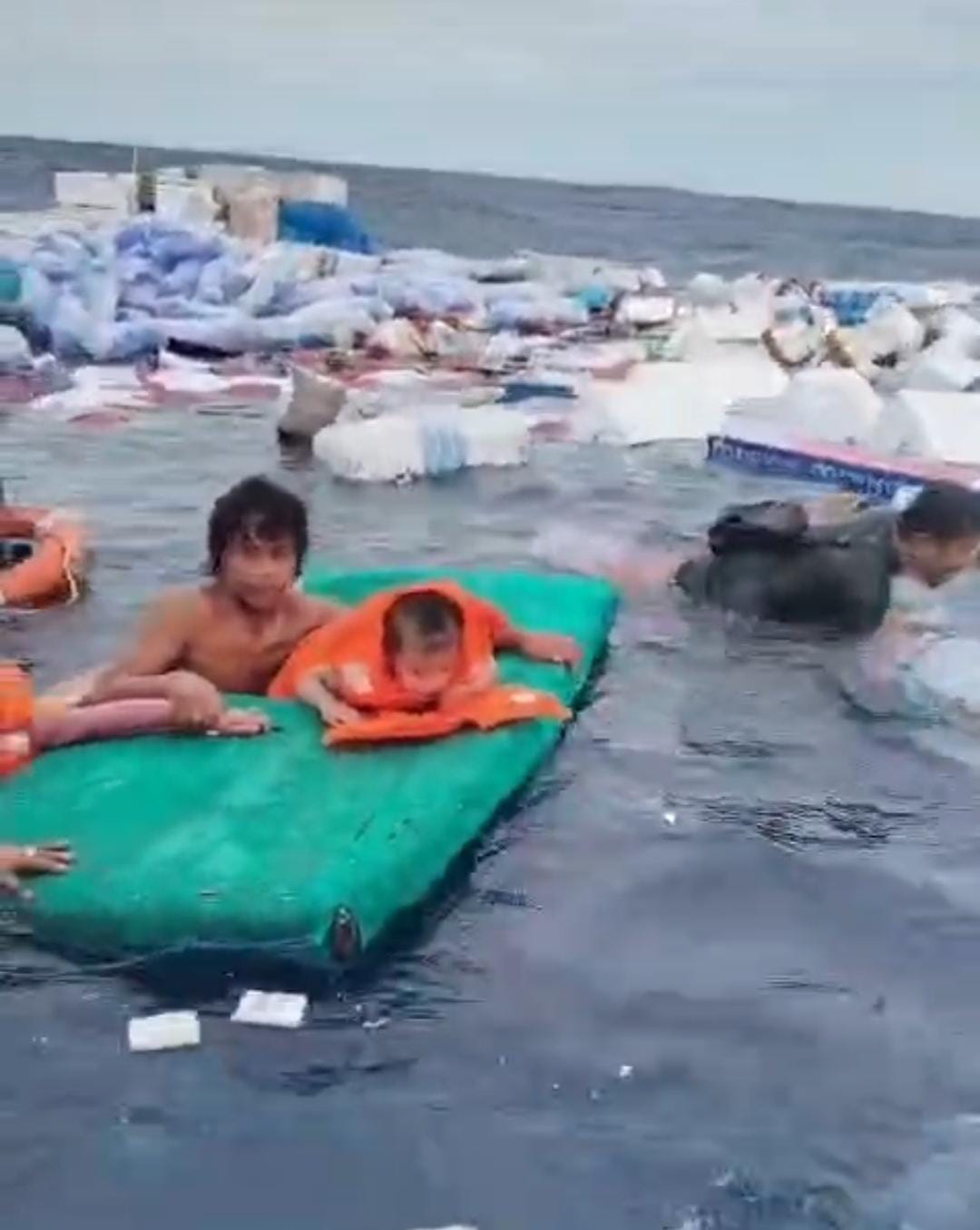 Tak hanya pria dan perempuan dewasa, dalam rekaman tersebut juga tampak anak-anak, bahkan balita yang diperkirakan berusia di bawah lima tahun, ikut berada di tengah laut bersama para penumpang lainnya.
