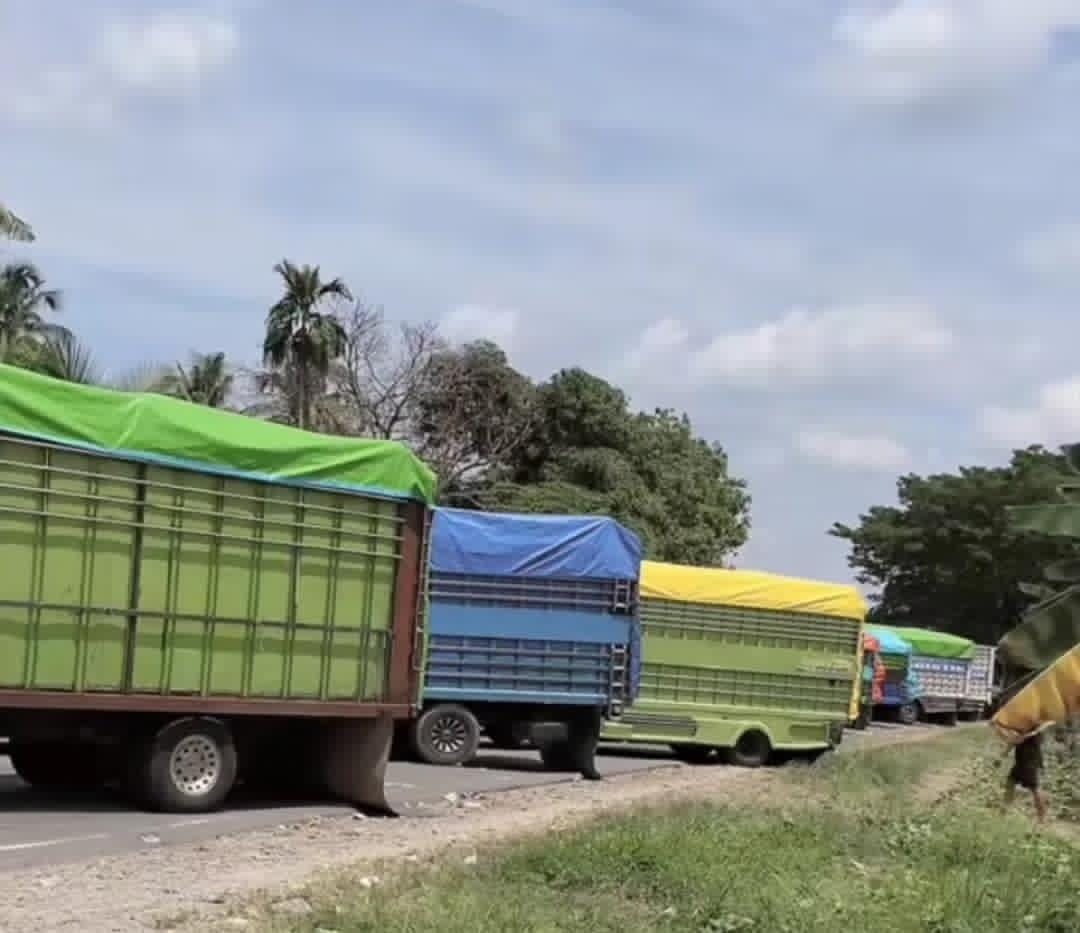 Truk-truk pengangkut bahan pangan tertahan akibat penutupan total jalur Trans Sulawesi yang dilakukan massa aksi penuntut pemekaran Provinsi Luwu Raya selama beberapa hari terakhir.