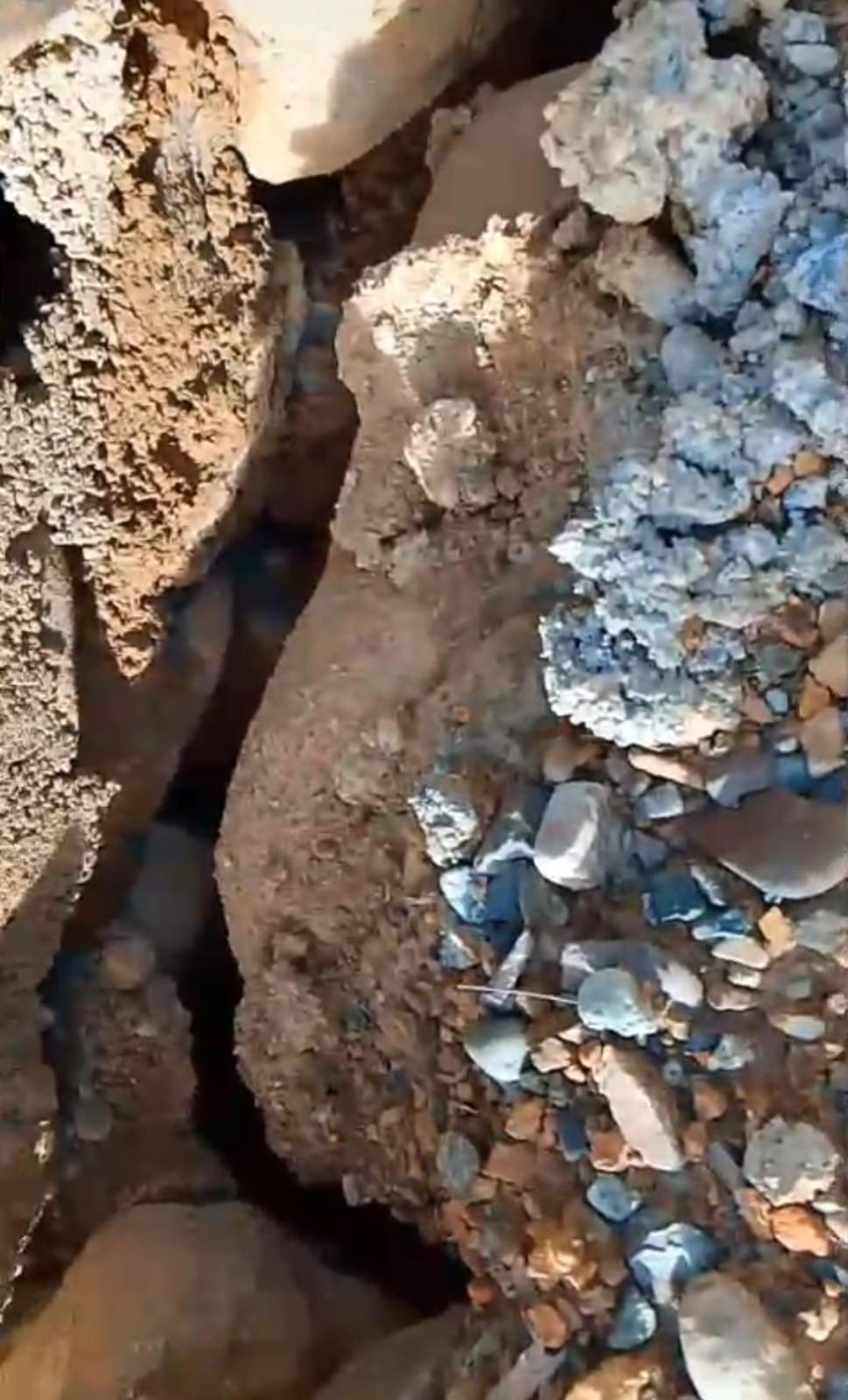 Dalam video tersebut terlihat adanya rongga pada pondasi, batu yang tidak terikat dengan baik, serta sejumlah elemen struktur yang tampak terlepas.