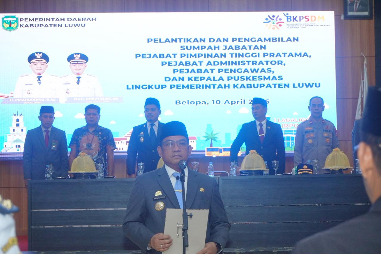 Dalam sambutannya, Bupati Luwu, Patahudding, menegaskan bahwa prosesi pelantikan ini bukan sekadar acara seremonial semata, melainkan penyerahan amanah besar yang wajib dijalankan dengan penuh tanggung jawab.