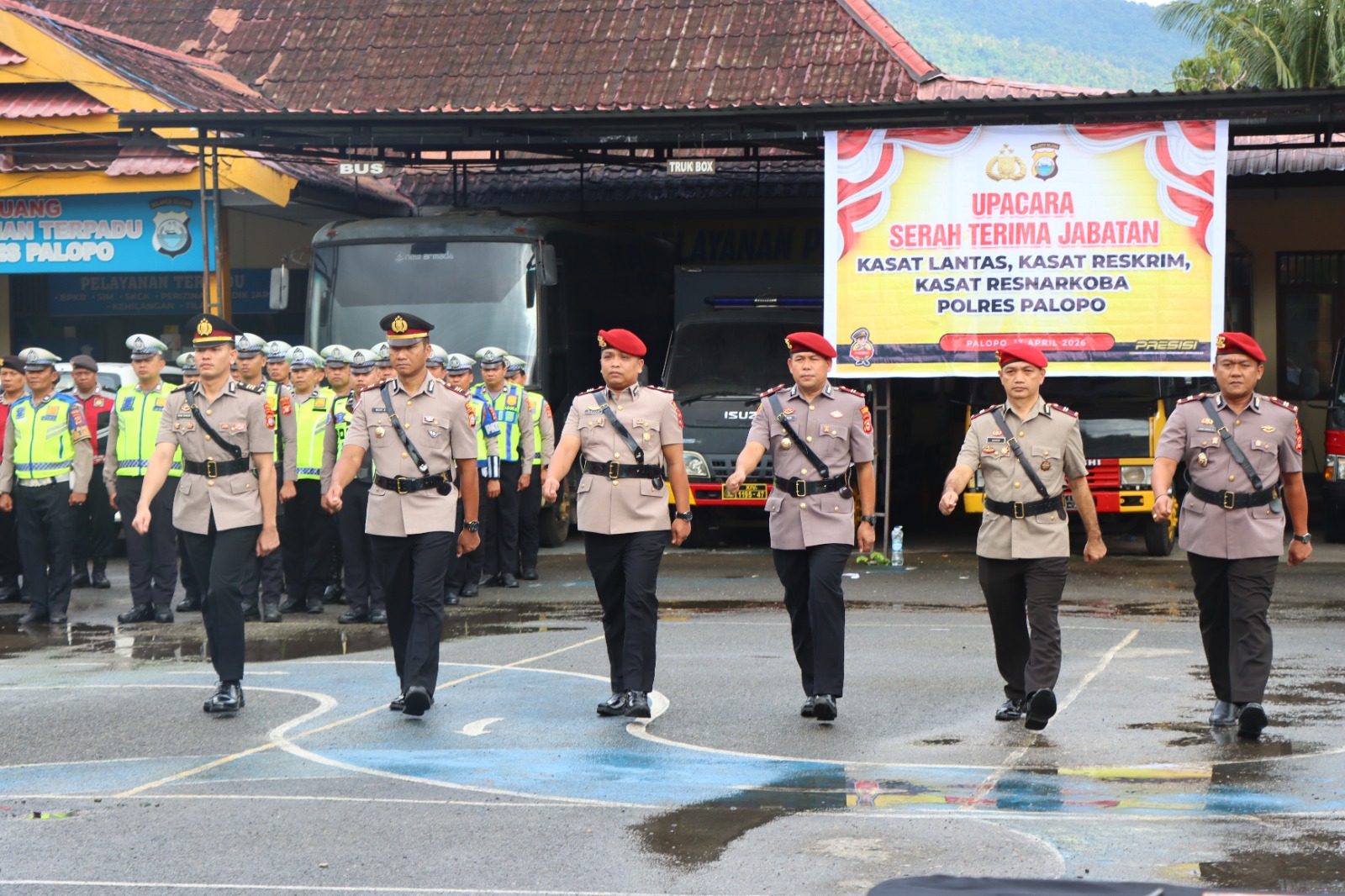 HUKRIM – Kepolisian Resor (Polres) Palopo melaksanakan upacara serah terima jabatan (sertijab) sejumlah pejabat utama, yakni Kasat Lantas, Kasat Narkoba, dan Kasat Reskrim.
