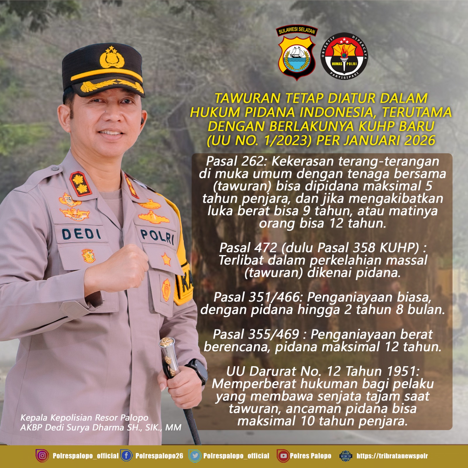 PALOPO – Memasuki awal tahun 2026, Kepolisian Resor (Polres) Palopo mulai menggencarkan sosialisasi terkait penerapan regulasi terbaru penanganan kekerasan di kalangan remaja.