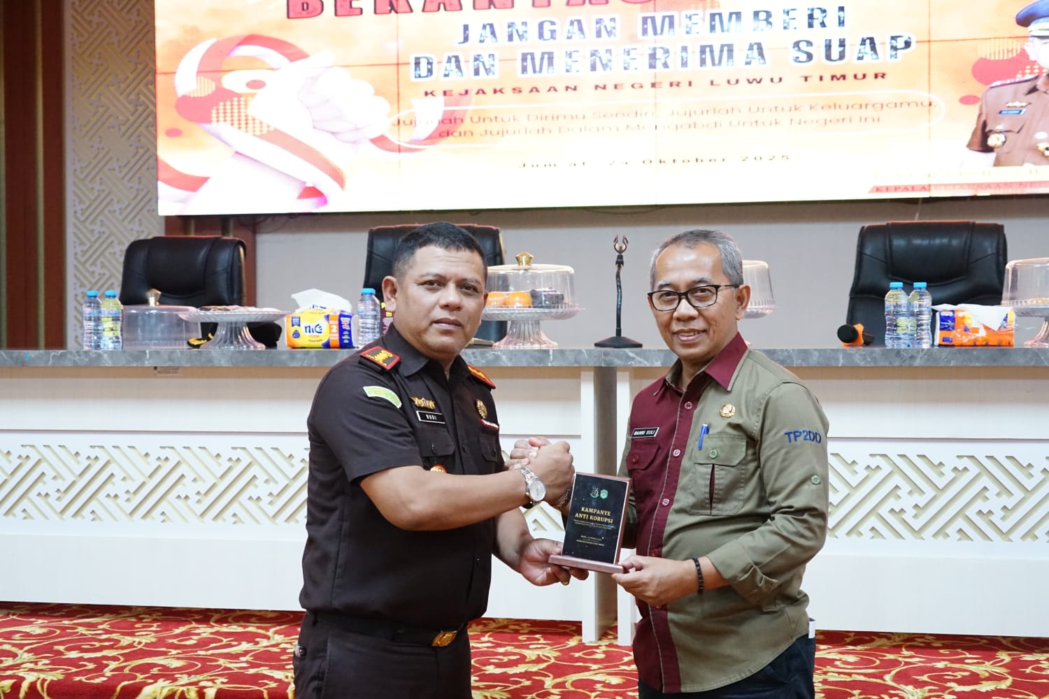 LUWU TIMUR – Pemerintah Kabupaten Luwu Timur bekerja sama dengan Kejaksaan Negeri (Kejari) Luwu Timur menggelar Kampanye Anti Korupsi di Aula Sasana Praja Kantor Bupati, Jumat (24/10/2025).