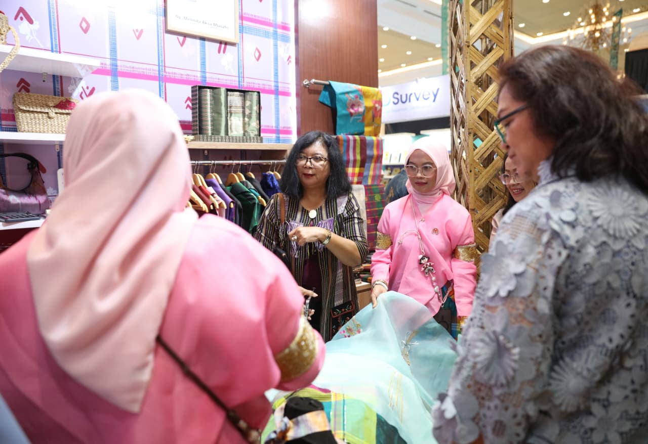 Booth Dekranasda Kota Makassar menjadi salah satu yang paling ramai dikunjungi, baik oleh pembeli lokal, istri kepala daerah, hingga wisatawan mancanegara.