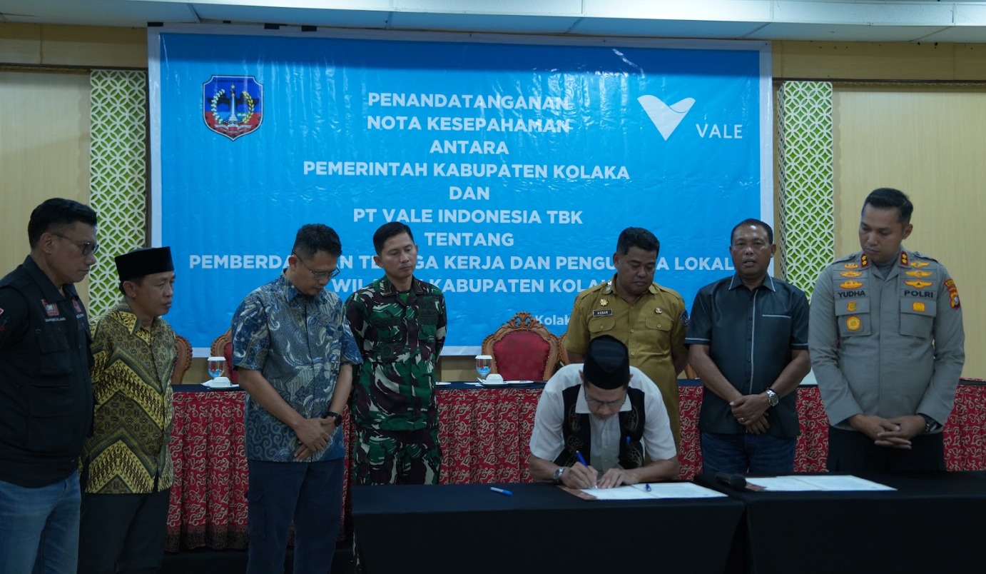 Untuk meneguhkan komitmen pemberdayaan SDM dan pelaku usaha lokal, PT Vale dan Pemerintah Kabupaten Kolaka menandatangani nota kesepahaman tentang Pemberdayaan Tenaga Kerja dan Pengusaha Lokal di wilayah Kabupaten Kolaka pada Selasa (16/09/2025).