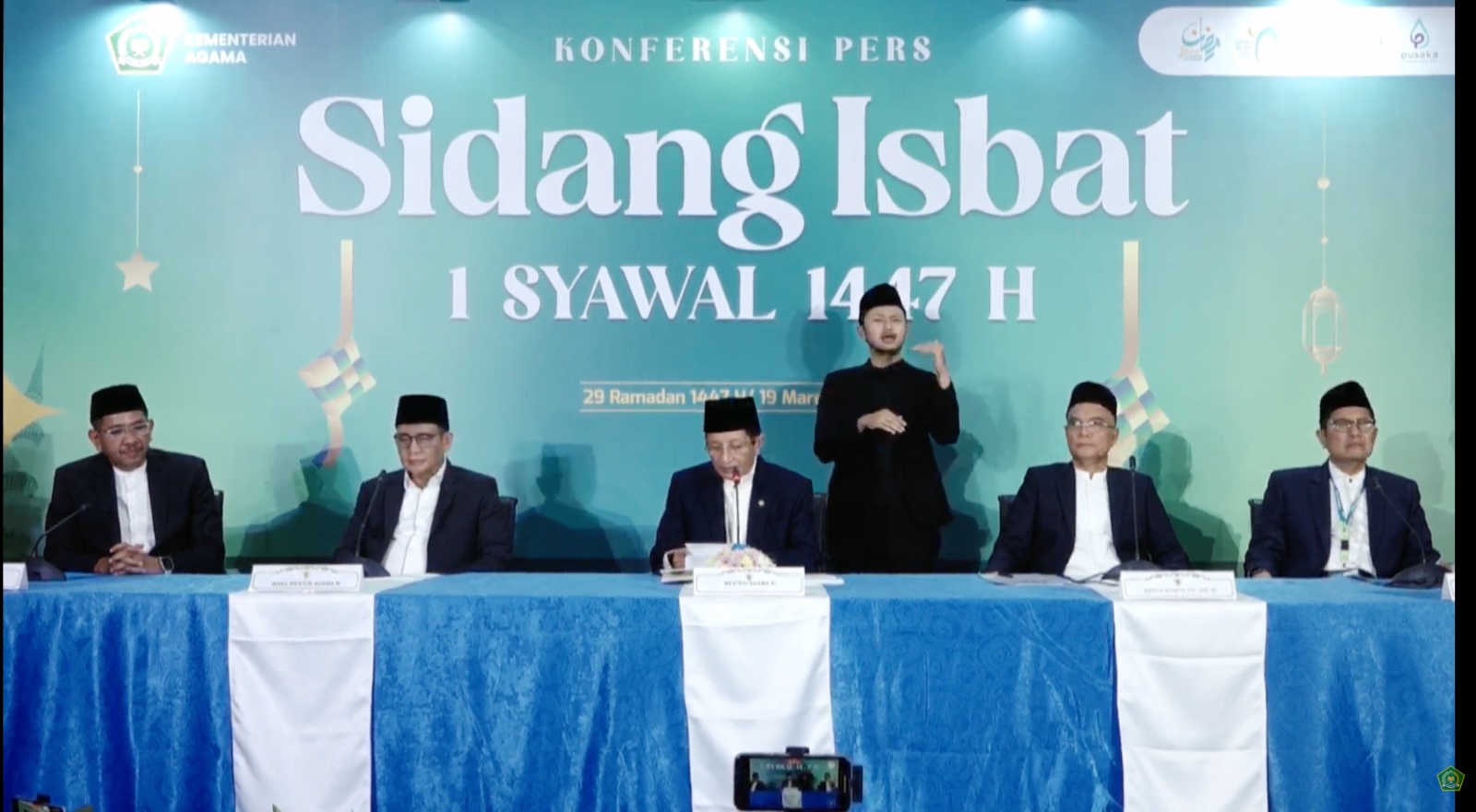 “Dengan demikian, berdasarkan hasil hisab serta tidak adanya laporan hilal terlihat, disepakati bahwa 1 Syawal 1447 Hijriah jatuh pada hari Sabtu, 21 Maret 2026,” tegasnya.