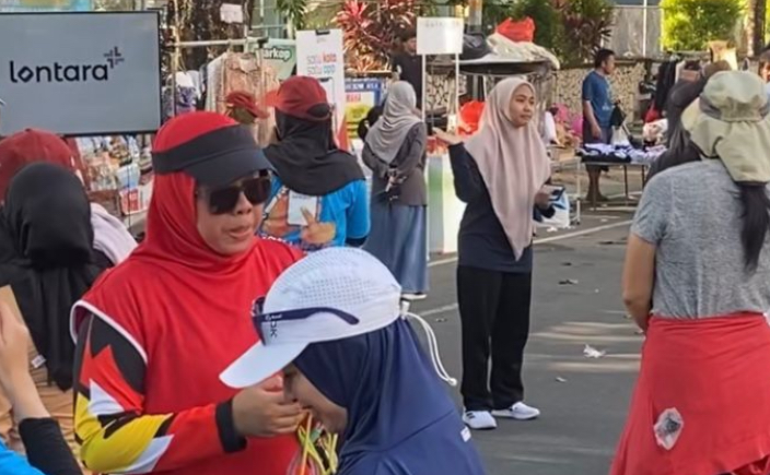 Sapa Warga di CFD, Tim Lontara+ Diskominfo Makassar Bagi-bagi Merchandise Menarik