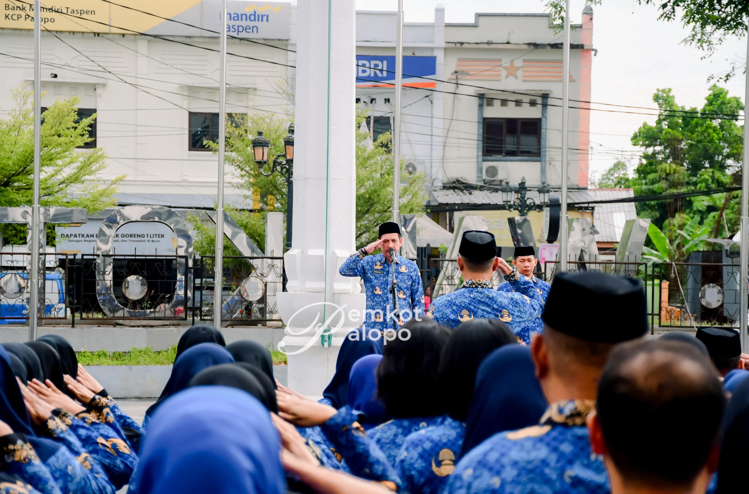 DAERAH – Sekretaris Daerah Kota Palopo, Firmanza DP, memimpin Upacara Hari Kesadaran Nasional (HKN) yang berlangsung di halaman depan Kantor Wali Kota Palopo pada Rabu (17/9/2025).