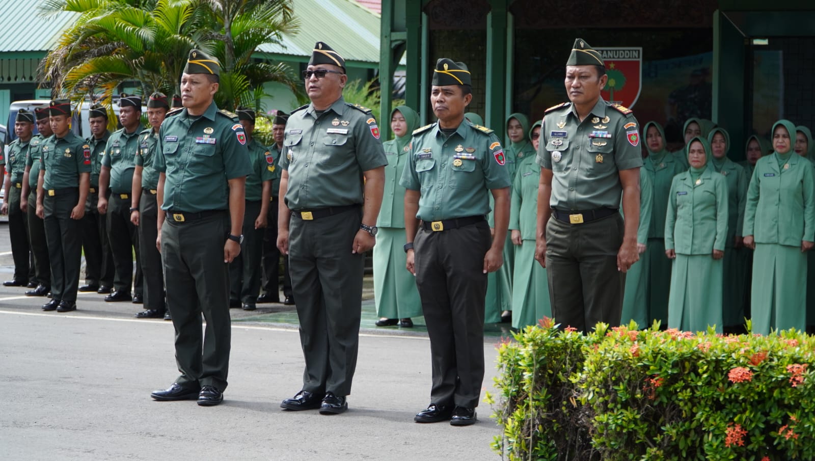 Upacara tersebut dipimpin langsung oleh Dandim 1403 Palopo, Letkol Inf Windra Sukma Prihantoro, dan diikuti oleh para Perwira Staf, Danramil sejajaran Kodim 1403 Palopo, perwakilan Bintara, Tamtama, PNS, serta Ketua Persit Kartika Chandra Kirana Cabang XXXVIII DIM 1403 Palopo pada Kamis (09/04/2026).