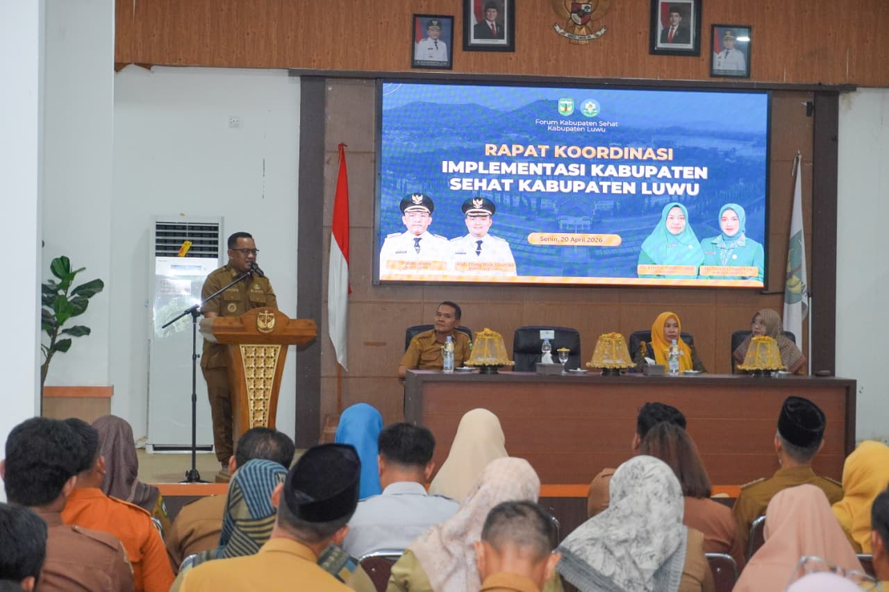 Komitmen ini dipertegas saat Bupati Luwu, Patahudding, membuka Rapat Koordinasi Penguatan Forum dan Implementasi Kabupaten Sehat Luwu di Aula Rumah Jabatan (Rujab) Bupati Luwu pada Senin (20/04/2026).